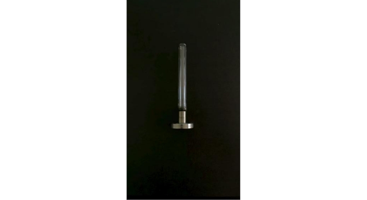 我们常用的金属与玻璃封接是管状式封接,封接件由盖板、玻璃体和芯柱三部分构成(如下图所示)。在一定的温度、气氛等条件下,玻璃体作为一种良好的绝缘材料,将不同材质的盖板和芯柱封接成密封件,封接玻璃具有透气率低(可达10-10 Pa m3/s)、抗热震性能好、耐压(耐压值达340 MPa)、耐腐蚀等优良性能。